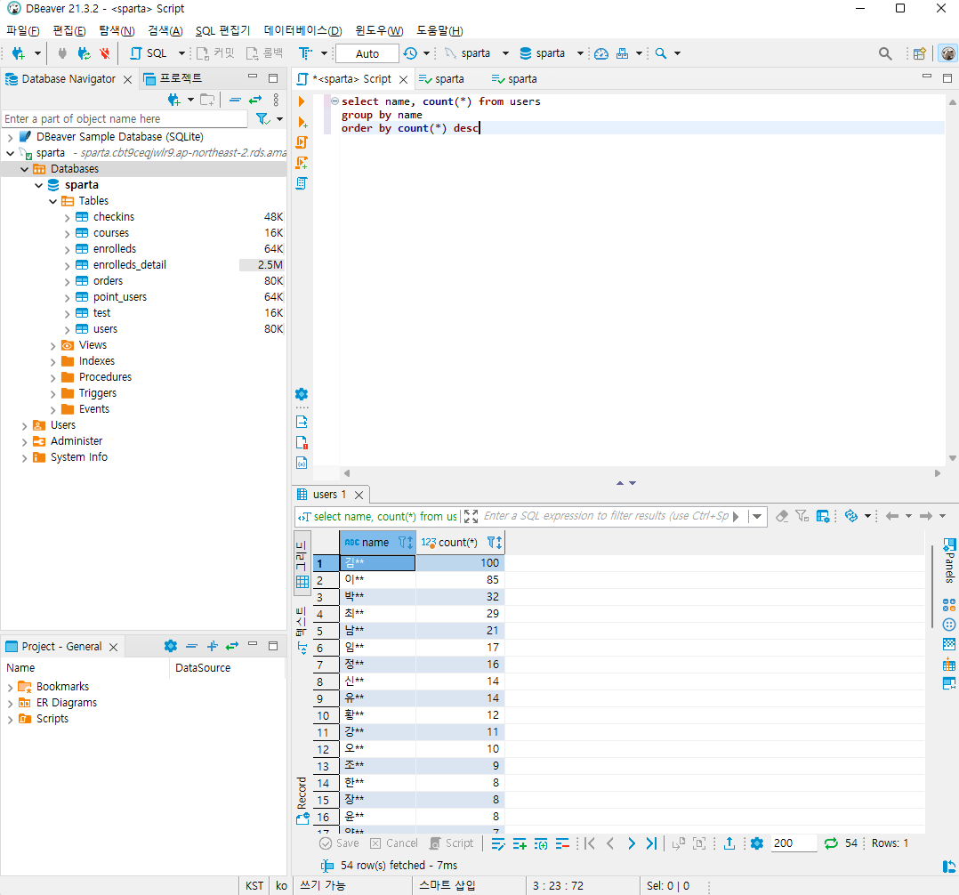 그리고 count(*)로 출력되는 값이 보기 안 좋으니
